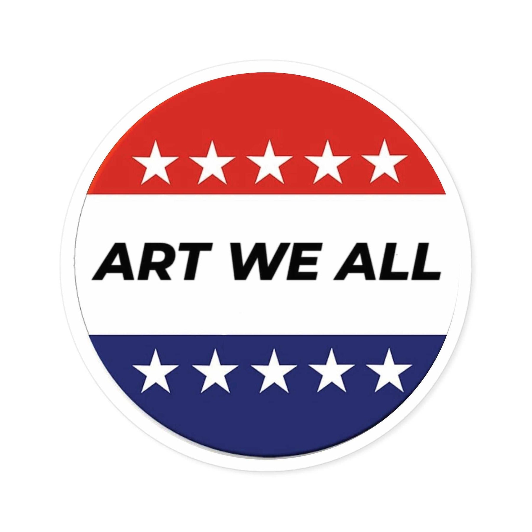 Vibrant and durable ART WE ALL Campaign sticker, perfect for indoor or outdoor use. Adds a pop of color and creativity to your belongings. Ideal for artists, activists, and anyone passionate about art and social causes. Great for decorating laptops, water bottles, and notebooks. Relevant for art events, activism campaigns, and cultural celebrations.