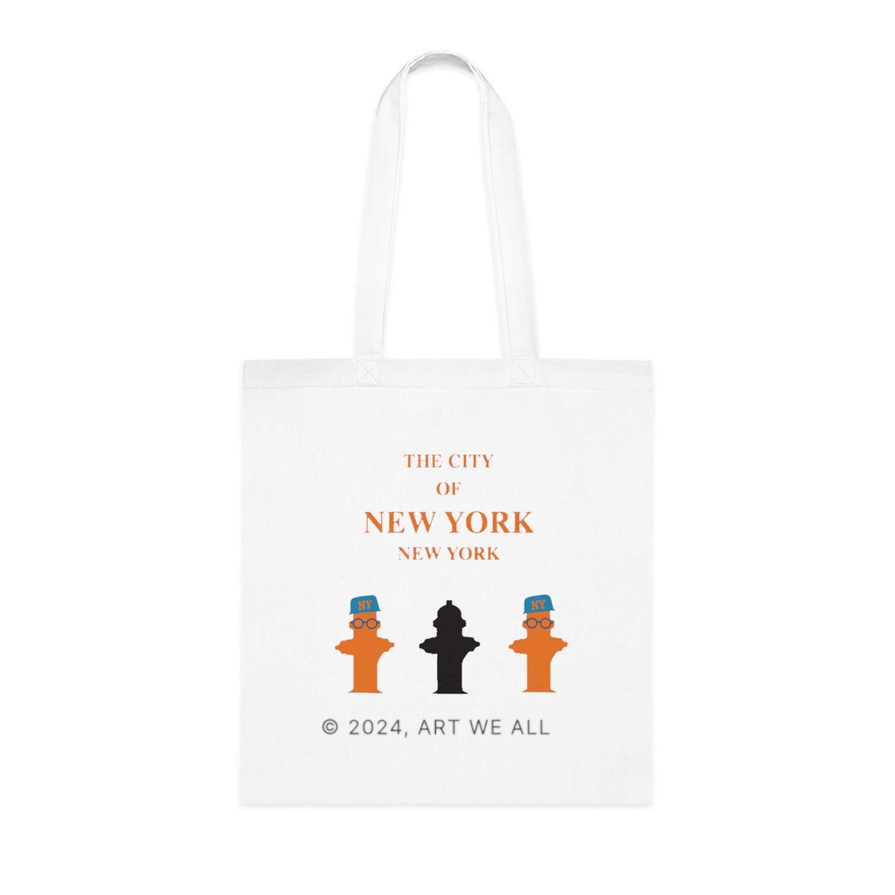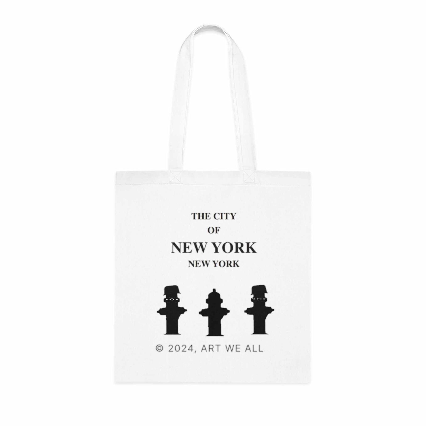 The ART WE ALL New York City Cotton Tote Bag is a stylish and versatile accessory that exudes a creative and artsy vibe. Perfect for carrying groceries, books, or essentials, this tote bag is relevant for city dwellers, art enthusiasts, and travelers. Ideal for daily use, shopping trips, beach days, and as a gift for a friend who loves NYC.Product features- 100% Cotton fabric for durability and smoothness- Design on both sides for double the creativity- Reinforced stitching on handles for added strength- Flat corners for a sleek look- Vibrant color options to choose fromCare instructions- Hand wash only. Let the bag air dry